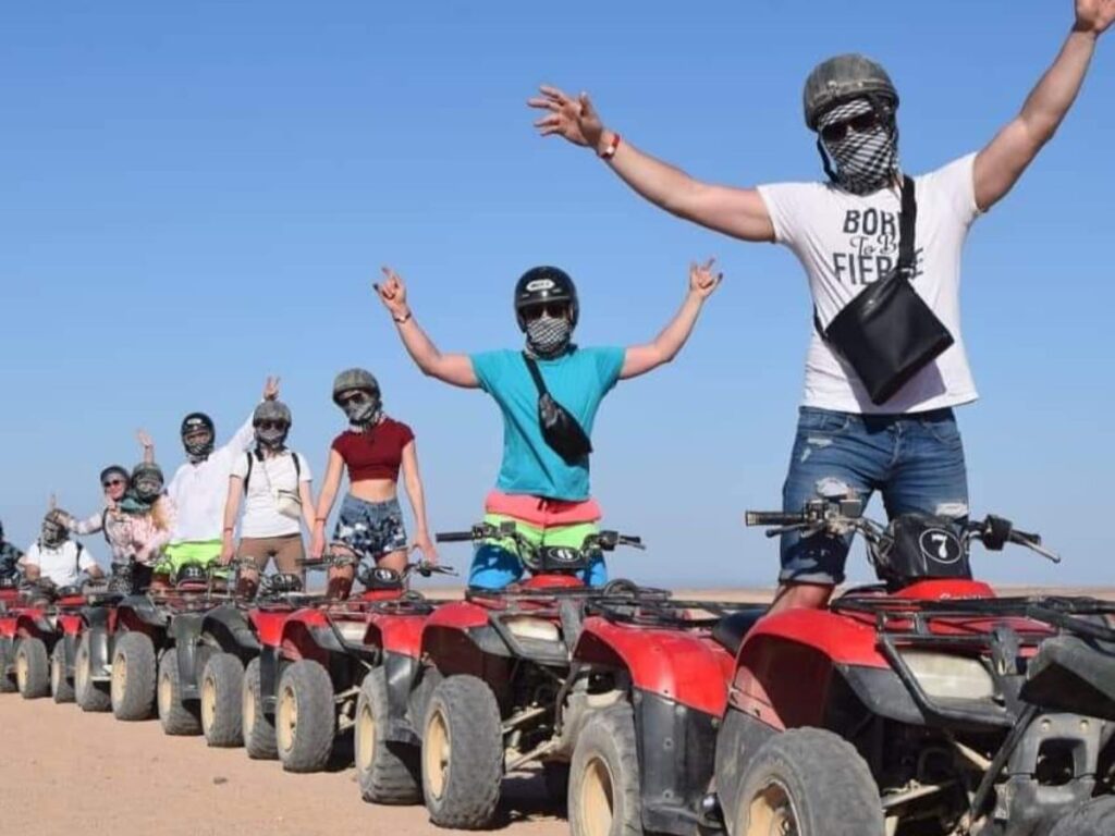 Erleben Sie den Nervenkitzel einer Quad-Fahrt durch die ägyptische Wüste: Genießen Sie eine 45-minütige Tour mit dem Strandbuggy, halten Sie die magischen Momente bei einem Fotostopp fest und tauchen Sie in die weite Landschaft von Hurghada ein.
