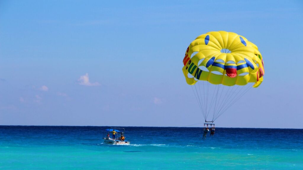 Schweben Sie über dem Roten Meer: Genießen Sie den Adrenalinkick und die atemberaubende Aussicht beim Parasailing hinter dem Speedboot.